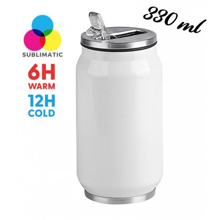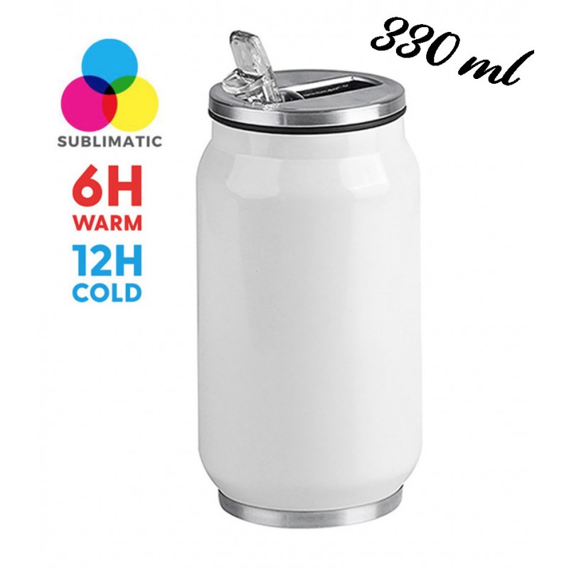Borraccia termica acciaio inox 330 ml doppio strato color Bianco. Cannuccia integrata in materiale antibatterico. Regge 12 ore di freddo e 6 ore di caldo.