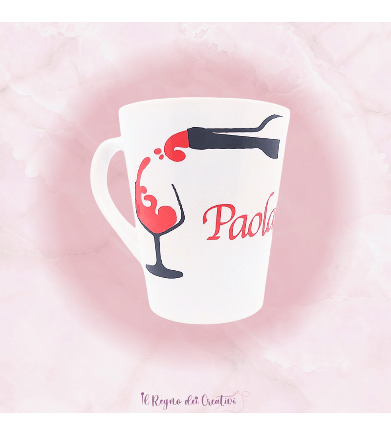Tazza da latte personalizzata con vinile permanente Tessy in sovrapposizione. Il prodotto si intende ad uso esclusivamente espositivo e non alimentare.