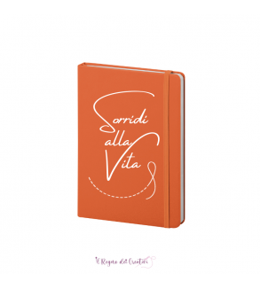Quaderno Notes con copertina flessibile in similpelle personalizzata con elastico laterale a chiusura e segnapagina in tinta.  160 Fogli a righe. Dimensioni 14 x 21cm circa