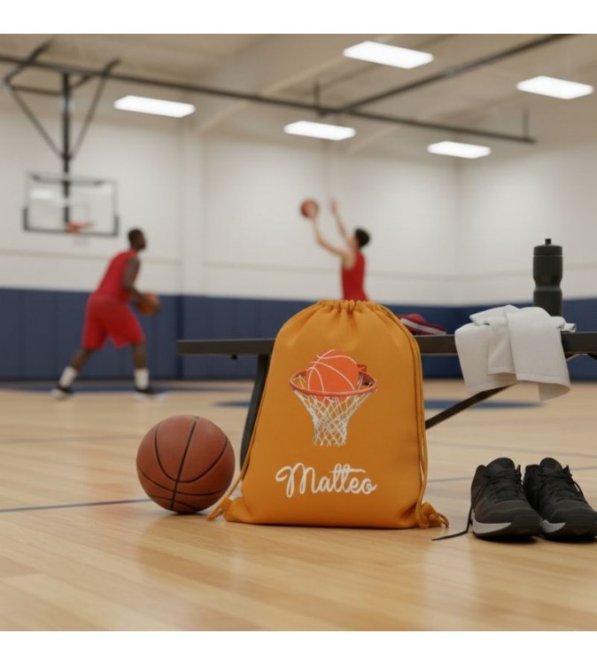 Sacca zaino multiuso in poliestere con cordoncini regolabili sulle spalle di 0,4mm di spessore. Occhiello metallico a rinforzo. Dimensioni 34 x 42 cm.