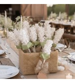 Dei teneri segnaposto con un fiore di lavanda in morbido pannolenci con fiocco in Juta ed etichetta segnanome. Prodotto realizzato interamente a mano Dimensioni del fiore con stelo 25cm.