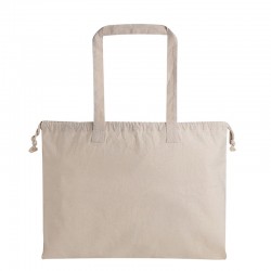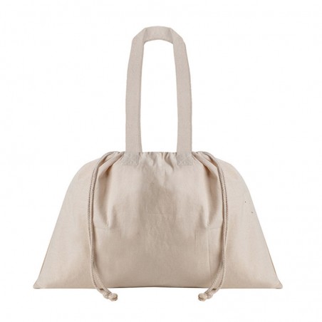 Borsa con doppia corda di chiusura 100% cotone. Manici lunghi e colore naturale con rifiniture cucite.