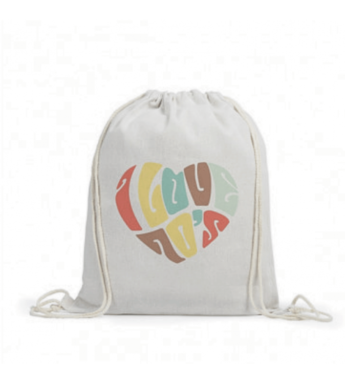 Sacca in canvas con coulisse, adatto alla sublimazione, in poliestere morbido e resistente.