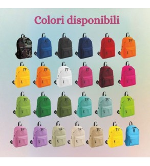 Zaino PERSONALIZZABILE in poliestere 600D.Varie tasche chiuse da zip. Corredato di manico e tracolle regolabili salvaspalle. Dimensioni cm 28x38x12 cm.