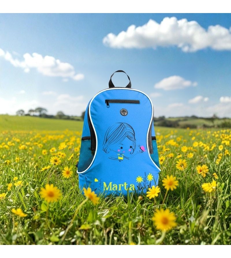Zaino in poliestere 600D. Chiusura con zip. Tasca frontale con uscita auricolari chiusa da zip. Corredata di manico rinforzato. Tracolle salva spalle regolabili. Taschini laterali a rete. Colori disponibili: rosso, nero, bianco, blu, verde, arancio, giallo, fucsia, verde lime. Dimensioni 29x40x17 cm.